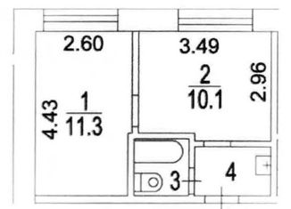 Общая площадь: 44.3 м2