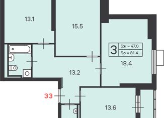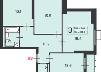 Общая площадь: 81.4 м2
