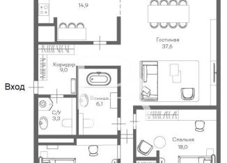 Общая площадь: 86.9 м2