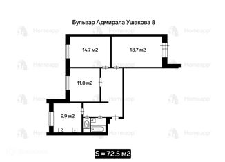 Продается трехкомнатная квартира, 72.5 м2, бульвар Адмирала Ушакова, 8