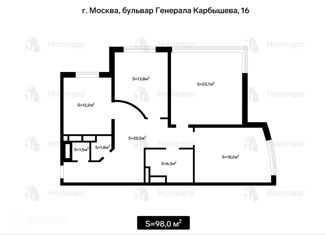 Трехкомнатная квартира на продажу, 99.4 м2, бульвар Генерала Карбышева, 16
