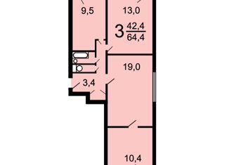 Продажа трехкомнатной квартиры, 38.6 м2, бульвар Генерала Карбышева, 14