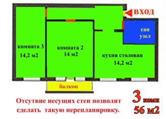 Общая площадь: 56 м2