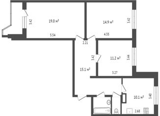 3-комнатная квартира на продажу, 54.9 м2, Кантемировская улица, 11