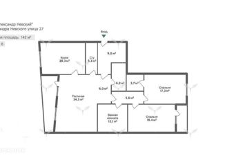 Трехкомнатная квартира на продажу, 142 м2, улица Александра Невского, 27