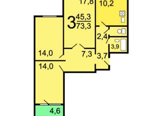 Общая площадь: 73.4 м2