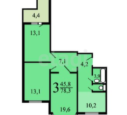 Общая площадь: 78.2 м2