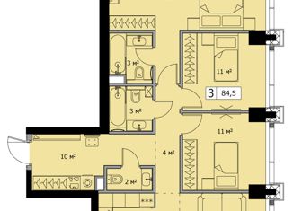 Продается трехкомнатная квартира, 85.5 м2