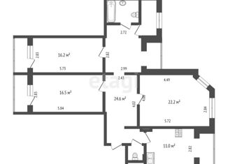 Продаю трехкомнатную квартиру, 88.1 м2, Нижегородская улица, 74