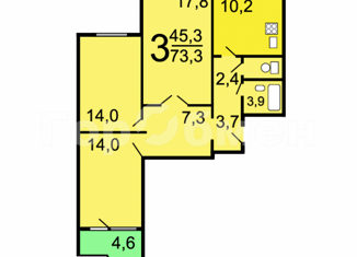 Общая площадь: 73.3 м2