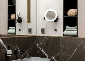 ПРО КВАРТИРУ: В квартире выполнен дизайнерский ремонт по проекту с использованием импортных материалов. Планировка-распашонка (окна на 2 стороны), панорамное остекление. Кухня-гостиная 30,5 кв.м., кабинет, спальня, гардеробная, постирочная, три балкона. Высота потолков 3 метра. Есть теплые полы, система фильтров воды, водонагреватель, 3 кондиционера... |