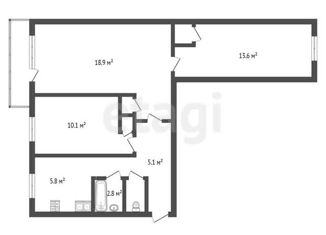 Общая площадь: 58.3 м2