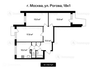 Продажа 3-ком. квартиры, 72.7 м2, улица Рогова, 18к1