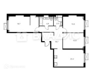 Общая площадь: 90.7 м2