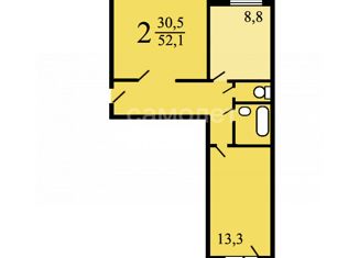 Общая площадь: 52.1 м2