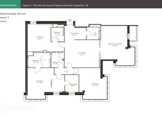 Четырехкомнатная квартира на продажу, 206.5 м2, Большой Афанасьевский переулок, 28