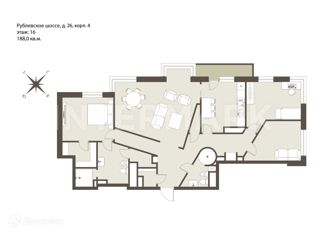 Четырехкомнатная квартира на продажу, 188 м2, Рублёвское шоссе, 26к4