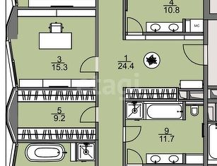 Общая площадь: 185.4 м2