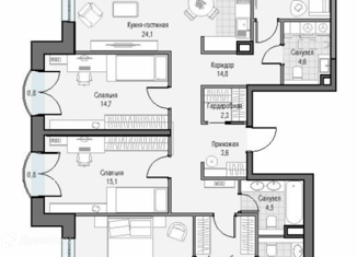 Четырехкомнатная квартира на продажу, 86.8 м2, Дмитровское шоссе, 7к2