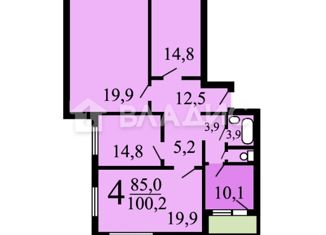 Продажа четырехкомнатной квартиры, 83.9 м2, улица Милашенкова, 12В