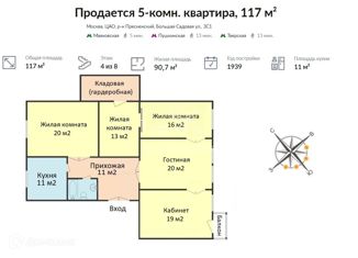 Продается 5-комнатная квартира, 117 м2, Большая Садовая улица, 3с1