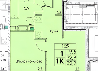 Общая площадь: 32.9 м2