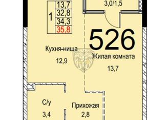 Продажа однокомнатной квартиры, 34.8 м2, Газгольдерная улица, 10