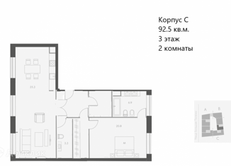 Продажа трехкомнатной квартиры, 93.1 м2, Шлюзовая набережная, 2А