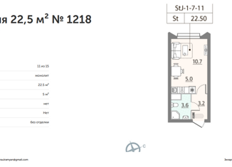 Общая площадь: 22 м2