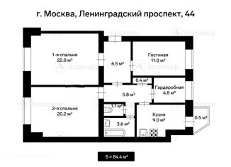 Четырехкомнатная квартира на продажу, 84.4 м2, Ленинградский проспект, 44