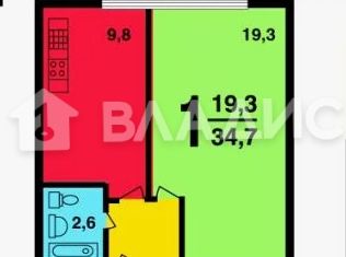 Общая площадь: 34.8 м2