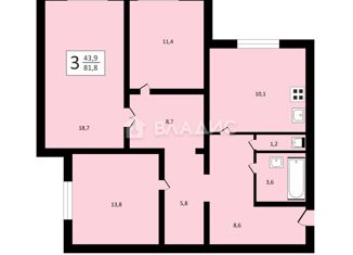 Трехкомнатная квартира на продажу, 85 м2, Новороссийская улица, 32