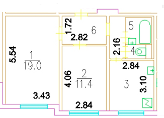 Общая площадь: 54.4 м2