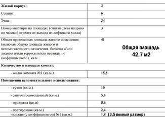 Общая площадь: 42.8 м2