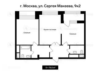Общая площадь: 76 м2