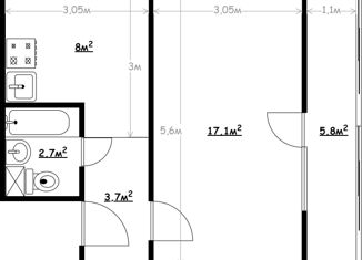Продаю однокомнатную квартиру, 30.1 м2, Амурская улица, 1Ак3