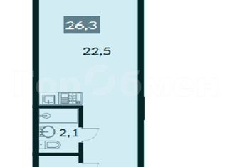 Общая площадь: 26.3 м2
