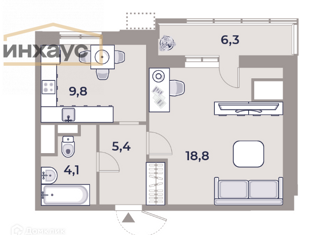 Общая площадь: 41.8 м2