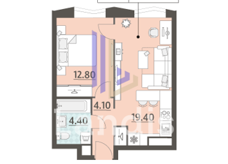 Общая площадь: 40.9 м2