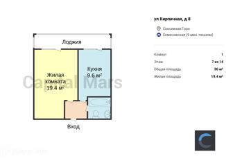 Продажа однокомнатной квартиры, 36 м2, Кирпичная улица, 8