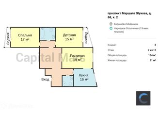 Продается трехкомнатная квартира, 104 м2, проспект Маршала Жукова, 68к2