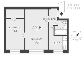 Продажа двухкомнатной квартиры, 42.8 м2, Комсомольский проспект