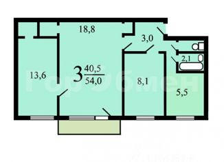 Общая площадь: 54 м2