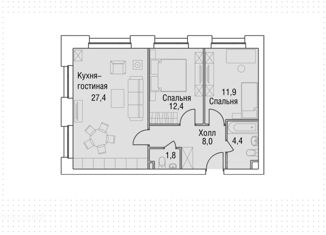 Продажа 2-комнатной квартиры, 56.6 м2, улица Народного Ополчения, 11