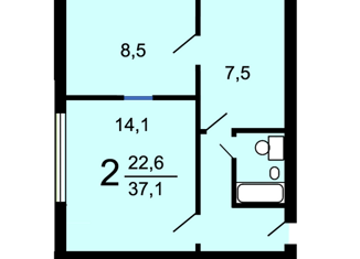 Общая площадь: 37.1 м2