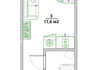 Общая площадь: 11.6 м2
