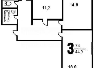 Продам трехкомнатную квартиру, 74.7 м2, Парковая улица, 33