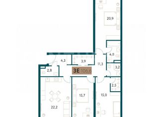 Общая площадь: 106.9 м2