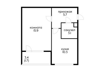 Однокомнатная квартира на продажу, 36.7 м2