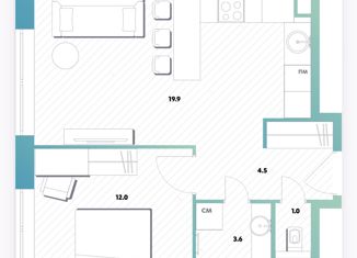 Однокомнатная квартира на продажу, 38.1 м2